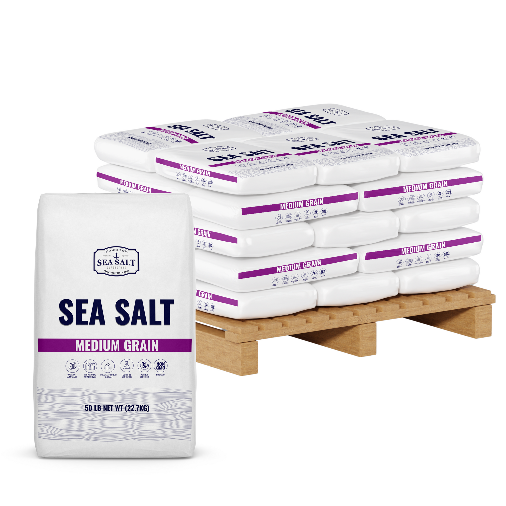 Stock up on Medium Grain Natural Sea Salt for a clean, high-quality solution to your bulk salt needs. Order your half pallet today!