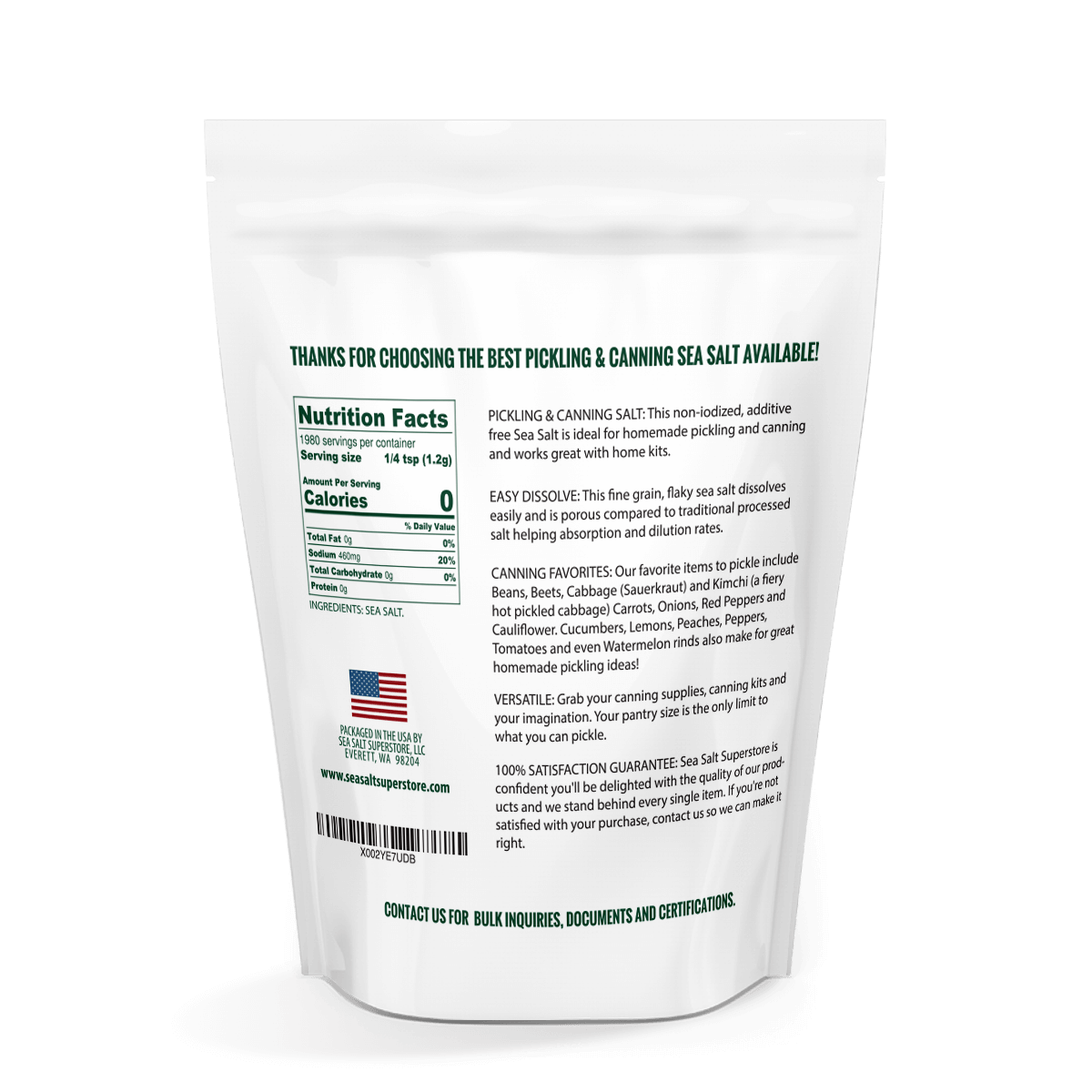 All Natural. No Additives. Non-Iodized. Fine flakey grain type for fast dissolve.